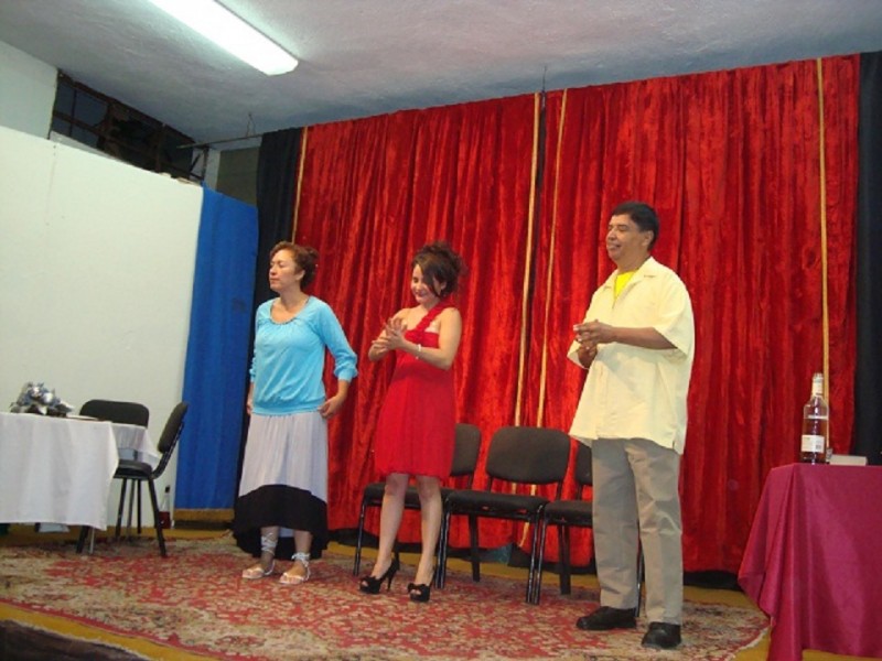 JACONA, MICH.- Niños de entre los 12 y los 15 años, integrantes del Grupo de Teatro Infantil que dirige Ma. Angeles Cortés Venegas, lograron una magnífica caracterización de la obra “En barbas del Alcalde”.