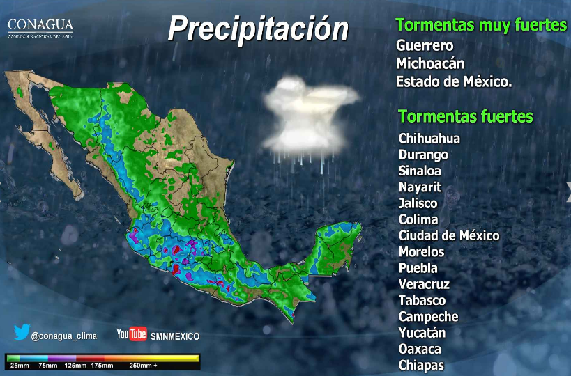 Se prevén tormentas muy fuertes en Michoacán, Guerrero y el Estado de México