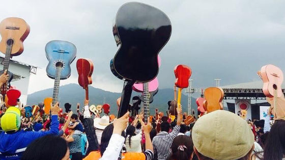 Morelia, Michoacán, a 26 de junio de 2016.- El alcalde de Paracho, Stalin Sánchez González, reconoció el trabajo coordinado y el apoyo brindado por el Gobierno de Michoacán, que encabeza Silvano Aureoles Conejo, para que el municipio lograra el récord continental de ensamble de guitarras.